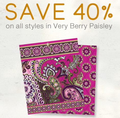 Today only save 40% on Very Berry Paisley at VeraBradley.com. This is one of my favorite patterns, I just love the berry color!