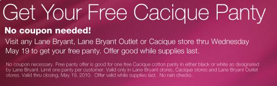 *Valid on Lane Bryant and Cacique purchases only. SPANX®, ASSETS®, DKNY JEANS items, Seven7, Reebok, Gift Cards and select online handbags, jewelry and fragrances not included. Cannot be combined with any other promotional offers. May be used only once, is not redeemable for cash, and may not be applied to credit card payments or previous purchases. Not available at Lane Bryant Outlet stores or closing stores. Valid online now through 11:59 pm PT on 11/27/11. Valid in stores 11/23/11 through closing on 11/27/11/. International Orders: Pricing and promotions may vary by region.