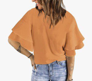 This cute Tiered bell sleeve top is so cute and comes in several colors. It’s 100% polyester and machine-washable. Great for fall!