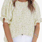 I love this top! It’s so cute and it fits great. It’s pretty true to size. The material is not thin at all and super soft, breathable and so comfortable.  The elastic on the arm is not tight at all. I’m getting it in another pattern, I love it that much! Look below for a deal. Unfortunately, you can only get one per person.  But if you bought one the last time, you can get another one this time!