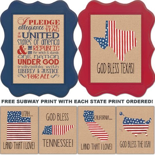 Check out these adorable Custom State Burlap Prints that are only 6.95!  You can include your name, a saying or whatever you’d like!  This would make a good gift too!