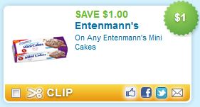 Print a coupon for $1.00 On Any Entenmann’s Mini Cakes. And while you are there you can also print $1.00 On Any Entenmann’s Muffin Tops.