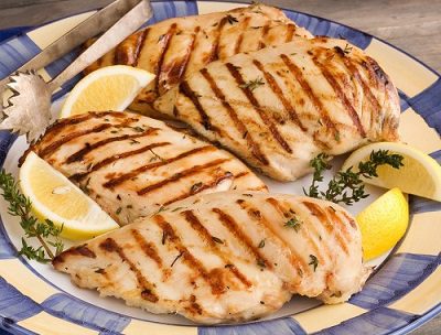 Nutrition information per serving (8 oz breasts): 180 calories, 36g protein, 0g carb, 4g fat, (1g sat. fat), 100mg chol, 990mg sodium, 0g fiber