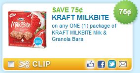 Print a coupon for $.75 off ONE (1) Kraft Milkbite Milk & Granola Bars.
