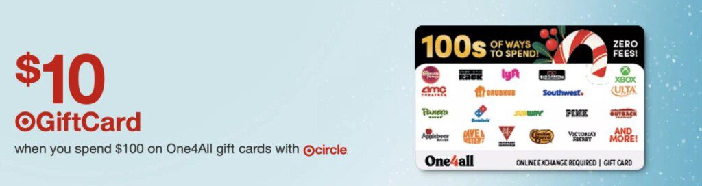 You will get a $10 Target Gift Card when you spend $100 on One4All gift cards!  They have over a dozen different card combos to choose from.  You definitely will find something for everyone!