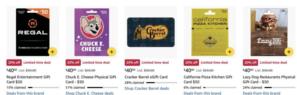 Amazon has a HOT deal on some digital Gift Cards right now. These are just a few of them.  Check out this page for all of them.