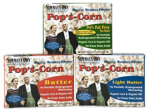 I shared with you lots of Newman’s Own Organics snacks not too long ago and now I have something to add to that list!  After the pretzels, cookies, chocolate bars, and chocolate cups successfully launched, “What’s next?” was the question Nell Newman and partner Peter Meehan asked themselves.   What was the next favorite childhood snack food could they produce organically?   And what new item would appeal to “Pa” Newman? And that’s when they came up with it –“Pop’s Corn, ” an organic microwave popcorn .