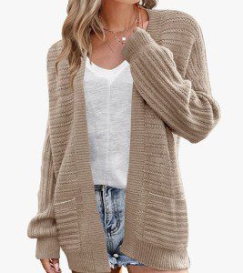 I love this Soft Open Front Cardigan.  I have it in the Dusty Blue and it’s like butter soft!  It is a bit oversized, but absolutely comfortable and the colors are so pretty.  This time I’m ordering it in the Soft Pink. It doesn’t have buttons, which I like!  And the pockets are a really nice size.  It comes in several colors, including the ones below and sizes small to extra large.  And like I said, it runs a little big.  This deal has been around before, but it was about $5 less last time.  I don’t know if it will go that low again, but I still think this is a good deal for a nice cardigan!