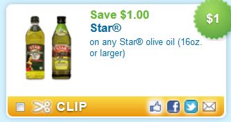 Print a coupon for $1.00 on any Star Olive Oil. This coupon is good for the 16 oz or more size.