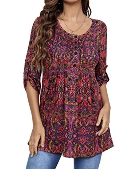 Amazon has this Women’s Tunic Top for as low as $9.99 shipped when you use coupon code 50EQOJWQ at checkout. It comes in sizes medium to 4XL. It looks like the Medium tops are all $9.99 after the coupon and the rest are $11.49 after the coupon. They have some really cute patterns and colors!